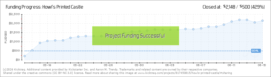 In just 22 hours, Howls Printed Castle has been completely funded, and you have all made ME the happiest guy on the planet :) A sincere thank you from the bottom of my heart everyone. Expect some great updates tonight - with a Reward Breakdown... (Read More)