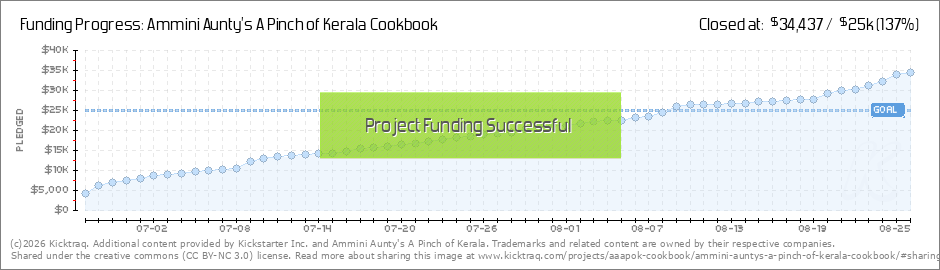 This cookbook is a dream for Ammini Aunty as a way for her to bring her well-curated recipes to the world and help preserve traditional South Indian dishes for the next generation. Within just three days, we've gotten 111 backers (at this publishing)... (Read More)