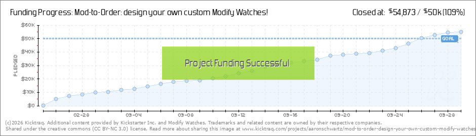 On March 1 Modify Watches launched their Mod-to-Order Kickstarter campaign, and with 23 days left on the clock, they have raised over $13,000 toward their goal of $50,000. The Kickstarter campaign is serving a two-fold purpose, according to Aaron Schwartz, Director of Player Personnel at Modify Watches. (Read More)