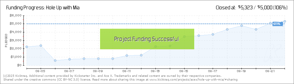 Help your backers reach your daily goals and help others see how you're doing. It's easy, with Kicktraq Mini.Here are a few quick snippits of code you can use to embed your personalized widget on your website, in your blog, and even on your favorite forum.