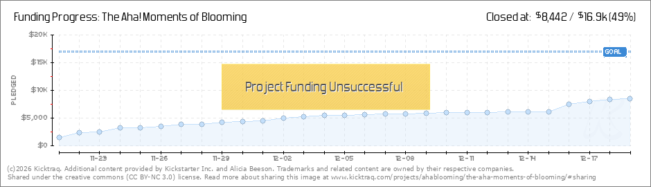 We're making progress with 31 backers, and roughly 138 left to go. The more seeds we plant, the more likely we'll go to press! Can you help me grow beyond my personal reach? Here's how you can help: Add a comment on the Kickstarter page— Your... (Read More)