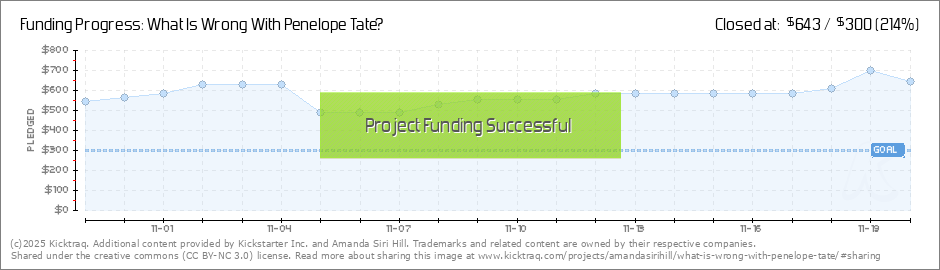 I want to send out a huge thank you to all of you for backing my project, we've funded! I am so excited to get the books to you and for you to meet Penelope. Keep watching for stretch goals, I'm working on those. It's been a pretty busy week for me... (Read More)