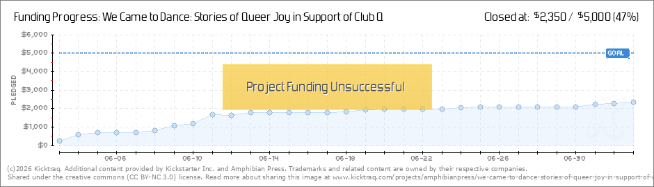 Our Kickstarter for We Came to Dance ended today, and while we had so, so many supporters, we weren't quite able to make our goal. However, this amazing team has decided to move forward with producing this important anthology on a smaller scale. ... (Read More)