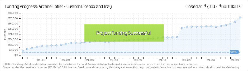 Yesterday we reached our $1,000 stretch goal, that means everyone who’s purchased an Arcane Coffer will have a leather-lined lid to their dicebox and tray! Thank you all so much and we can’t wait to see the rest of the Kickstarter flourish. Next... (Read More)