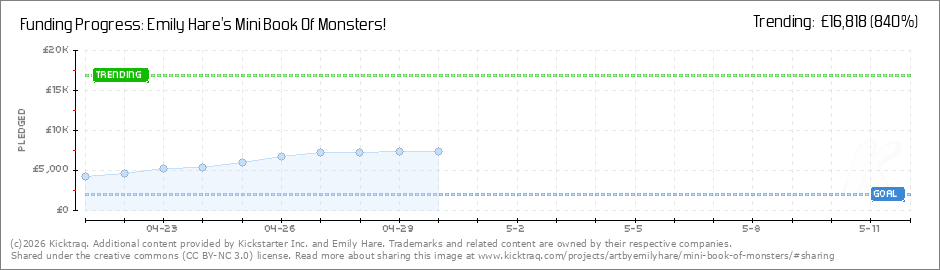 Help your backers reach your daily goals and help others see how you're doing. It's easy, with Kicktraq Mini.Here are a few quick snippits of code you can use to embed your personalized widget on your website, in your blog, and even on your favorite forum.