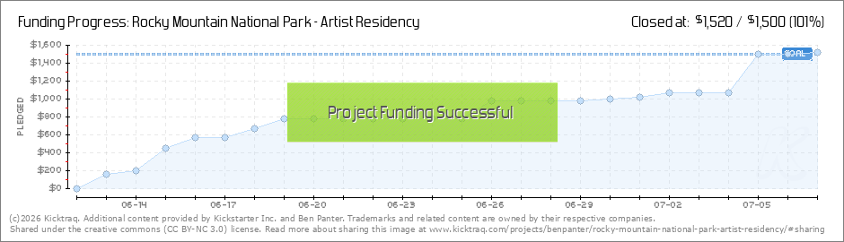 Two exciting things:First, we are now officially past the 50% mark. WOOHOO! You are all awesome. Second, there's an article on the Rocky Mountain National Park website highlighting the various artists that will be in residence throughout the summer.... (Read More)