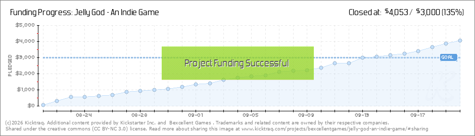Hello!It's the last hour of funding on Kickstarter for Jelly God, so I just wanted to say thanks to all of you who have supported the project through backing and sharing. It's really awesome that so many of you have got behind the game! I'll be... (Read More)