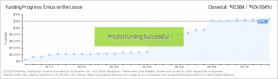 Help your backers reach your daily goals and help others see how you're doing. It's easy, with Kicktraq Mini.Here are a few quick snippits of code you can use to embed your personalized widget on your website, in your blog, and even on your favorite forum.