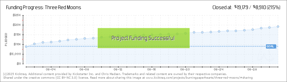 Help your backers reach your daily goals and help others see how you're doing. It's easy, with Kicktraq Mini.Here are a few quick snippits of code you can use to embed your personalized widget on your website, in your blog, and even on your favorite forum.