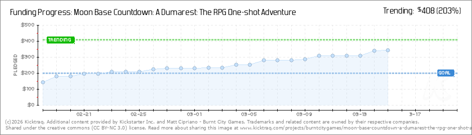 Help your backers reach your daily goals and help others see how you're doing. It's easy, with Kicktraq Mini.Here are a few quick snippits of code you can use to embed your personalized widget on your website, in your blog, and even on your favorite forum.