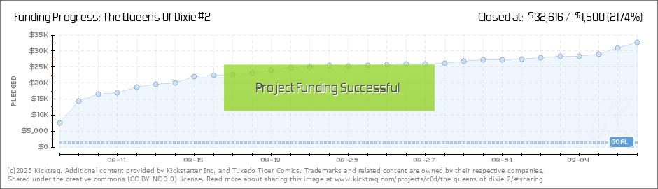 Thank you so much! Fully Funded in less than 5 minutes! I knew you wanted The Queens Of Dixie #2, I just didn't know this bad! NEXT lets hit that first GOAL!! THANK YOU!! (Read More)