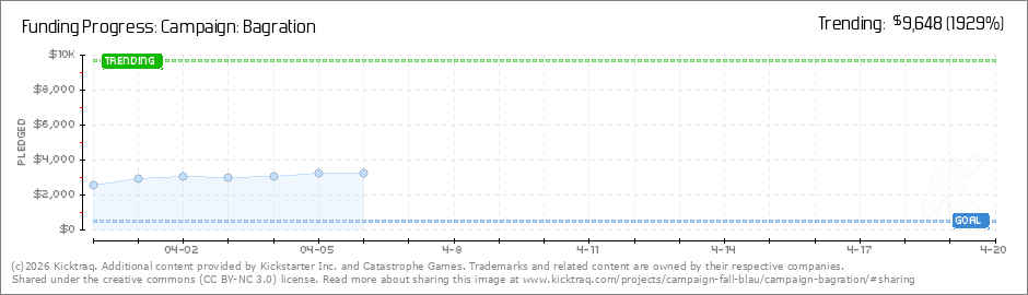 Help your backers reach your daily goals and help others see how you're doing. It's easy, with Kicktraq Mini.Here are a few quick snippits of code you can use to embed your personalized widget on your website, in your blog, and even on your favorite forum.