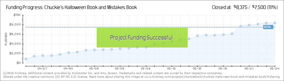 Happy Monday! We reached the goal (YAY) and are now on our way to the stretch goal of creating some adorable Halloween themed Chuckie toys if we reach $8200! There's still time to add on to your order if you would like any additional books or... (Read More)