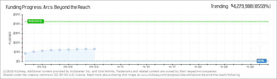 Dear Backers, Yesterday we passed a critical milestone, perhaps the most critical milestone: the Arcs campaign found its 10,000th backer. While this is a little less flashy than crossing a funding goal, it’s a far better indicator of the core... (Read More)