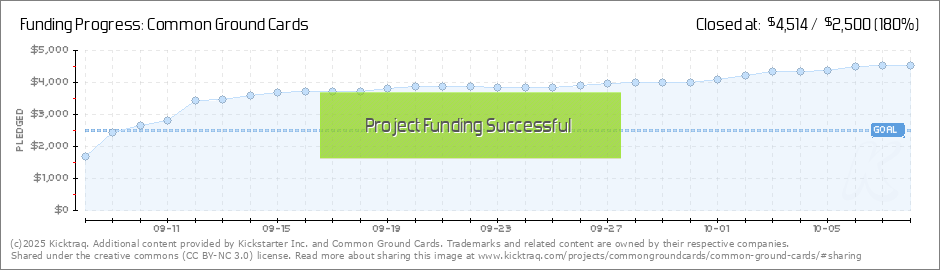 Hi all, Thank you so much for your support in backing our Kickstarter campaign! We're excited to share that we officially hit 100% of our pledge goal in just under 48 hours! 🥳 We are now able to bring Common Ground cards to life because of your... (Read More)