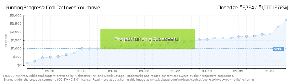 Hello Cool Cats, The kickstarter is almost over and you guys make us so happy! The main goal in my mind was 2,700, which will help us pay for a cool celebrity, and we just reached that figure!!! From me to you, thank you for joining with the Cool... (Read More)