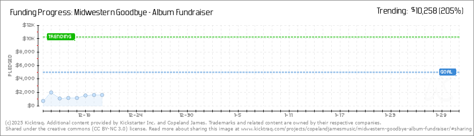 Help your backers reach your daily goals and help others see how you're doing. It's easy, with Kicktraq Mini.Here are a few quick snippits of code you can use to embed your personalized widget on your website, in your blog, and even on your favorite forum.