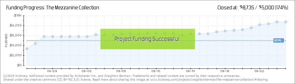 Hi all! Thanks for your early support of the Mezzanine Collection. Within 48 hours of launching last week the funding goal of $5k was surpassed, which means this project will be moving forward! Here's a little secret: my "actual" goal is $10k. This... (Read More)