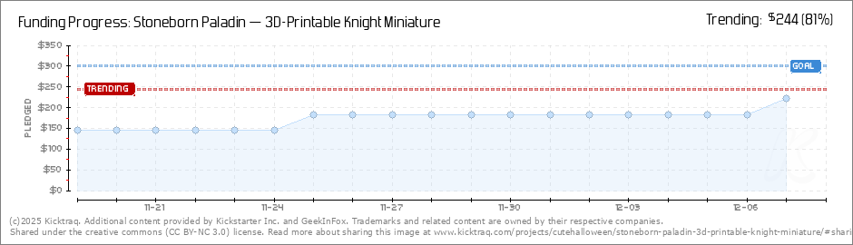 Help your backers reach your daily goals and help others see how you're doing. It's easy, with Kicktraq Mini.Here are a few quick snippits of code you can use to embed your personalized widget on your website, in your blog, and even on your favorite forum.