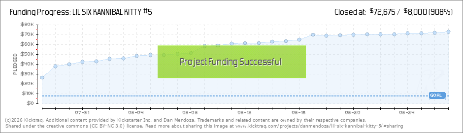 Hey Kannibal Kitty fans! we made the 50 K mark and that means another freebie unlocked. Now free to all physical backers is the Kannibal Kitty blank sketch card. As an added bonus, for every 100 backers, an original Sketch (by Dan Mendoza) will be... (Read More)