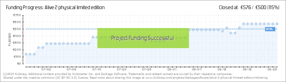 We are so glad to announce that we reached 98% of our campaign, just one more contributor and the physical limited edition of Alive 2 will be reality! Also, the Alive 2 full game Steam page is... (Read More)