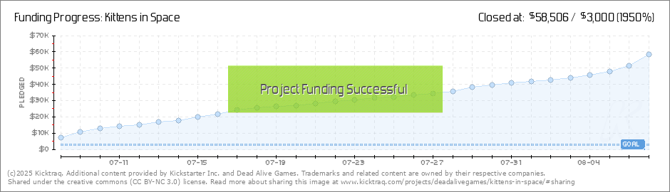 Hi Backers! After 15 days, Kittens in Space has a total of over $30,000 worth of pledges! THANK YOU! To keep this momentum going, we’ve planned a social engagement event (specifically, an activity with one very lucky winner) to share some... (Read More)