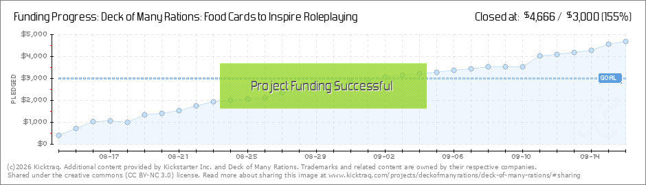 Hey everyone! We achieved 100% funded over the weekend! Wow, we are so thankful to all of you who got us to this fantastic Deck of Many Rations milestone. We are so happy to continue the holiday weekend celebration! Even as we kick up our heels in... (Read More)