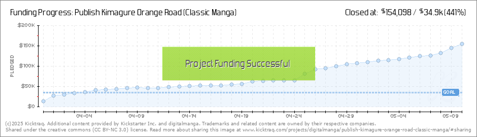 Hello and thank you all for your support of the initial funding of Kimagure Orange Road! The first omnibus is now funded! Please keep the momentum up, especially for the following Omnibus 2 stretch goal of $56,900! Once that goal is reached, you'll... (Read More)