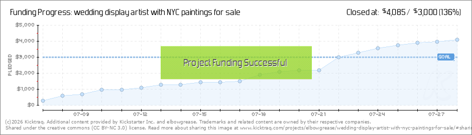 It happened! It finally happened! Thank you so much for being so kind and generous. I literally couldn't have done it without you. I'll be celebrating my making more paintings tomorrow so let's see how much further we can take this. More... (Read More)