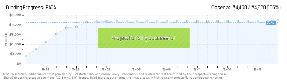 Help your backers reach your daily goals and help others see how you're doing. It's easy, with Kicktraq Mini.Here are a few quick snippits of code you can use to embed your personalized widget on your website, in your blog, and even on your favorite forum.