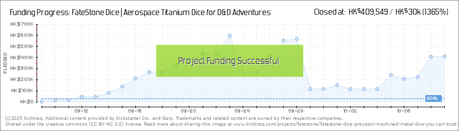 🎯 $100,000 Unlocked – Free 35mm D20 for Every BackerWhen our campaign reaches $100,000, every backer will receive an exclusive 35mm oversized D20. Precision CNC-milled from titanium, this massive die adds power and presence to your tabletop... (Read More)