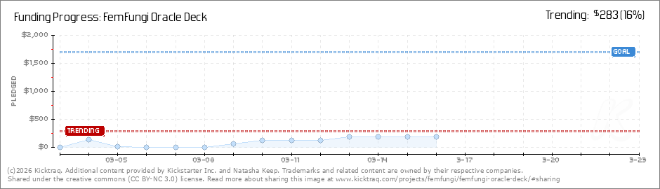 Help your backers reach your daily goals and help others see how you're doing. It's easy, with Kicktraq Mini.Here are a few quick snippits of code you can use to embed your personalized widget on your website, in your blog, and even on your favorite forum.