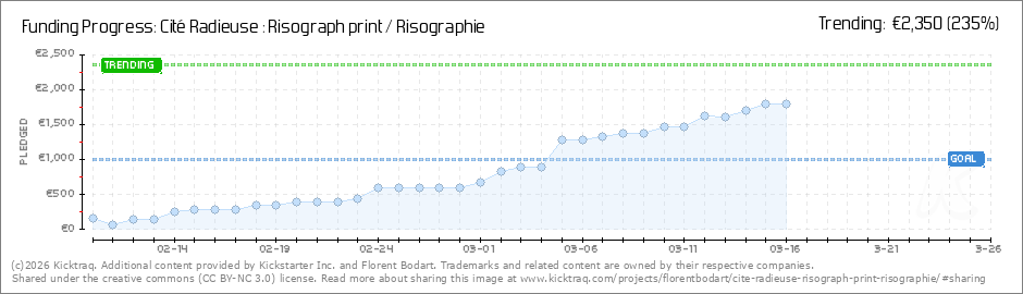 We've almost reached 150%! I'm very happy. A3 Early Bird pledges for risographs are over, but the regular-priced ones and A1 Fine Art Early Bird prints are still available. Thank you very much, Florent (Read More)