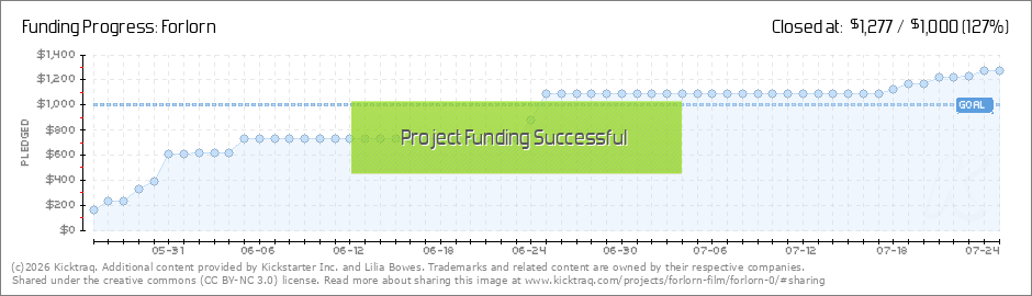 Forlorn Video on Instagram! Thank you!Thanks to your support, we have reached our funding goal of $1000 for our short film. None of this would be possible without the overwhelming support from our friends, family and amazing backers! We will soon... (Read More)