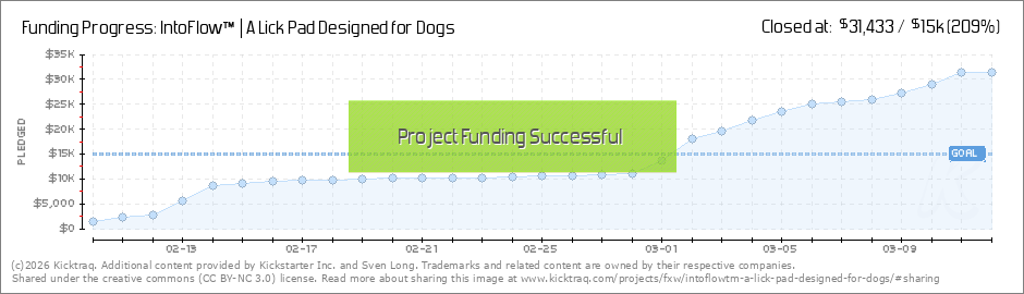 Dear Backers, We did it! IntoFlow Lick Pad™️ is officially 100% funded. In just a few short weeks, 364 amazing supporters pledged over $15,000 to bring this project to life. What started as an idea to create a better lick pad for dogs is... (Read More)