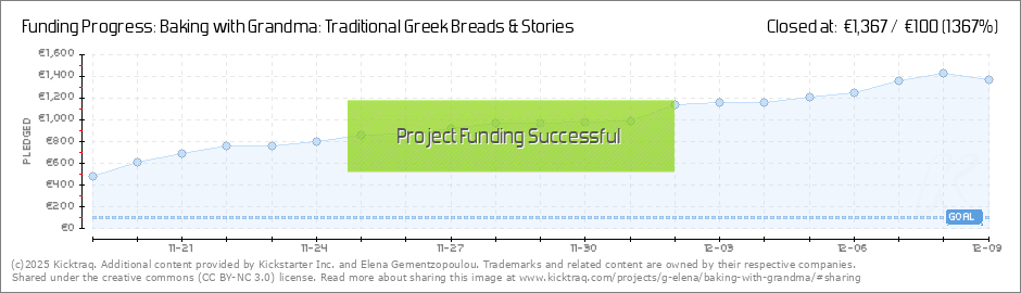 Hello backers, I’m happy to share that we’ve officially reached our first stretch goal !!! Thank you all for your support and enthusiasm for Baking With Grandma. Next up:👉 If we reach €1,000, I’ll add another traditional Greek recipe to... (Read More)