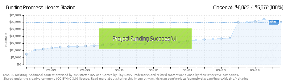 First off, thanks! The campaign has been moving forward at a healthy pace and we are happy to keep this train rolling. A few bits of housekeeping: Games by Play Date has added retailer specific pledge levels to the Hearts Blazing campaign. Stores... (Read More)