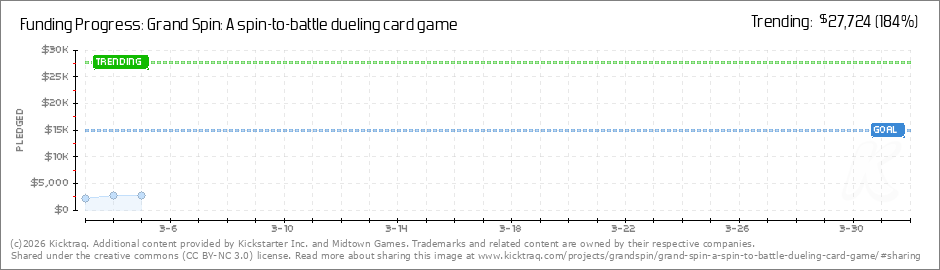 Help your backers reach your daily goals and help others see how you're doing. It's easy, with Kicktraq Mini.Here are a few quick snippits of code you can use to embed your personalized widget on your website, in your blog, and even on your favorite forum.