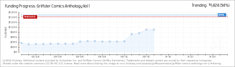 Hey Everyone, First and foremost, I want to thank you all for choosing to back Griffster Comics Anthology Vol 1. It means the world to us that you're willing to check out and support our collection of indie comics! After the first week we are sitting... (Read More)
