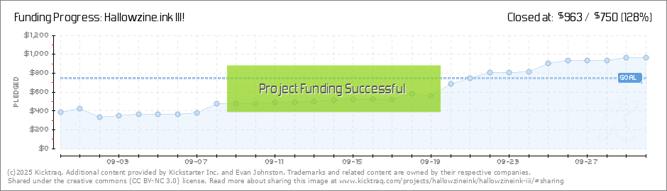 Dear Reader— I'm thrilled to say that as of today, Hallowzine.ink hit its fundraising goal!!! It's very exciting for me to go from promoting this project as often as I can, to getting back to making the best zine possible. I already feel like this... (Read More)
