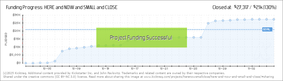 My Friends,We are overjoyed to announce that we are FULLY FUNDED, which means the book is officially happening!We cannot tell you how excited we are to begin bringing HERE and NOW and SMALL and CLOSE into the world!A few notes:- The campaign... (Read More)