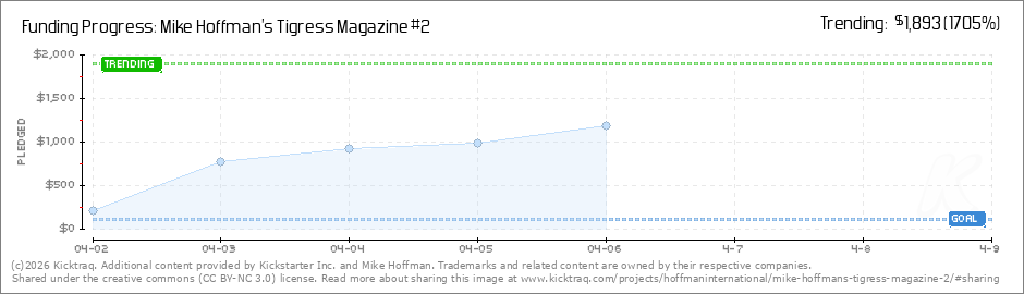 Help your backers reach your daily goals and help others see how you're doing. It's easy, with Kicktraq Mini.Here are a few quick snippits of code you can use to embed your personalized widget on your website, in your blog, and even on your favorite forum.