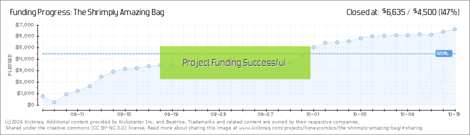 Hello hello! I have seen your comments and messaged about the Original Shrimply Amazing Bag in Blue Dream. Well, I am here to say, we’ve added our first stretch goal! If this campaign hits $5000 in pledges, we will create an add-on so you can get... (Read More)