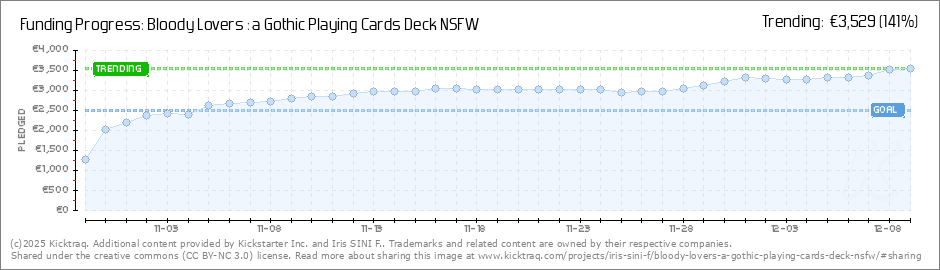 Help your backers reach your daily goals and help others see how you're doing. It's easy, with Kicktraq Mini.Here are a few quick snippits of code you can use to embed your personalized widget on your website, in your blog, and even on your favorite forum.
