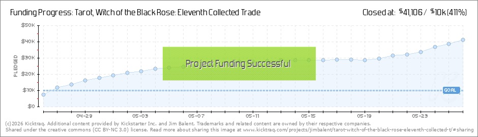 Hey All!Jim and I created the first of the Stretch Goals!And even before we got to update the project page, the FIRST GOAL has already been met! So every Backer that has a Trade Book in their package will receive one hand picked single issue of Tarot... (Read More)