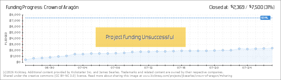As you know by now we didn't reach our goal of hitting 50% funding by yesterday but we're still pushing forward with hopes the we will gain enough traction to fund by the end of the campaign in a little over 8 days. We know that Crown of Aragón... (Read More)