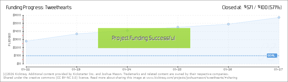 Help your backers reach your daily goals and help others see how you're doing. It's easy, with Kicktraq Mini.Here are a few quick snippits of code you can use to embed your personalized widget on your website, in your blog, and even on your favorite forum.