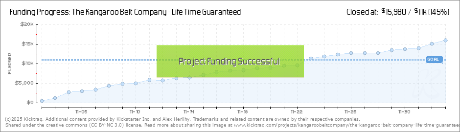 Was a pleasant suprise to wake up this morning to 5 new pledges and the news we had reached the half way point to our goal! We have been getting some feedback from our girl customers asking for a thinner version of the belt. We plan to make some... (Read More)