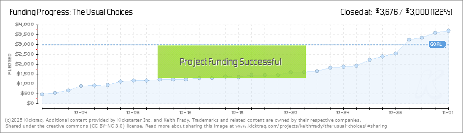 Hello, friends! We are nearing the $2500 mark, at which point we will be only $500 away from being funded! I cannot thank every single one of you enough. This would not be possible without your immense support and belief in myself and The Usual... (Read More)