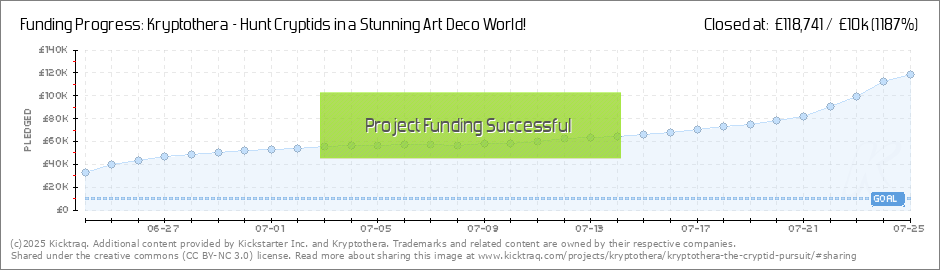 WE DID IT! Thank you so much!! We’re so excited to get Kryptothera - The Cryptid Pursuit into your hands. This would not be possible without your amazing support! So far, we’ve reached £14,103 raised from over 115 backers! We were hopeful of a... (Read More)